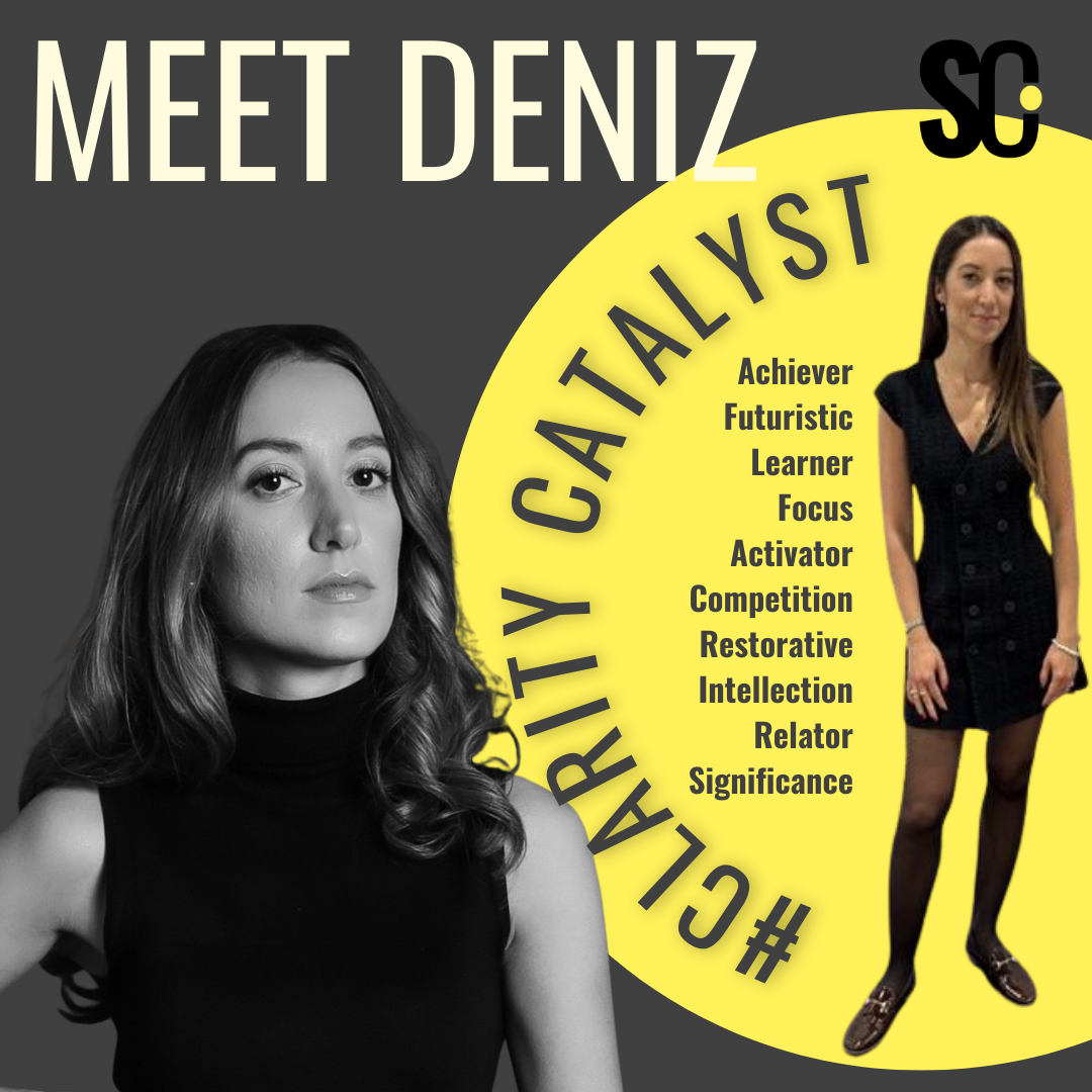 Deniz is an energizing, action-oriented Strengths Coach who combines ‘Achiever’, ‘Activator’, and ‘Focus’ to help you move from insight to impact—quickly, clearly, and with purpose. Driven by her ‘Futuristic’ and ‘Learner’ strengths, she naturally zooms out to what’s possible, then zooms in to build a practical path to get there.